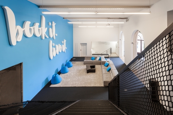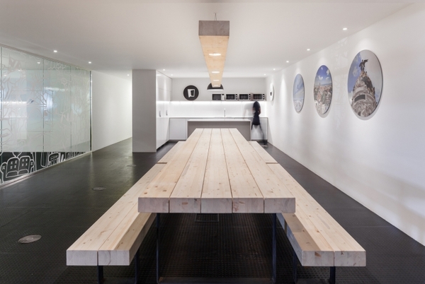 其辦公室裝修通過創(chuàng)造一個開放的工作空間,加強(qiáng)了公司各部門之間的交流。通過在開放空間之中的沉思場所的設(shè)計也達(dá)到了個人和集體的平衡。因此,小空間通過固定的元素,如圖書館和半開放會議室,或可移動的家具,如一些用于 Skype 聊天的構(gòu)筑物,得到了巧妙的利用。