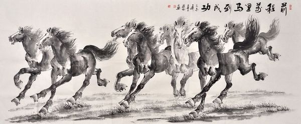 畫中肆意奔騰的駿馬,一日千里。畫出了徐悲鴻的八駿圖所體現(xiàn)的釋放的力量、超越的靈魂、顯示的氣度。是一幅****的八駿圖精品。
