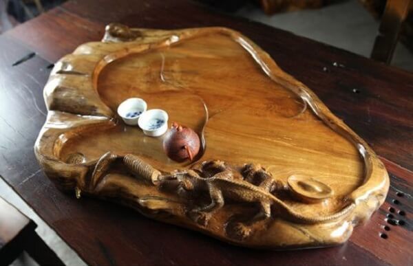 茶盤:茶盤:放置茶壺、茶杯、茶道組、茶玩乃至茶食的淺底器皿,承接泡茶過程中流出或倒掉的水。