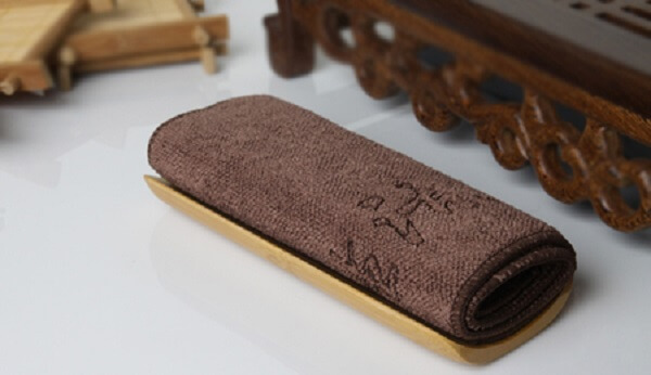 茶巾:用來擦拭泡茶過程中茶具上的水漬、茶漬,尤其是茶壺,品杯等的側(cè)部、底部的水漬和茶漬。切記只能擦拭茶具,而且是擦拭茶具飲茶、出茶湯以外的部位,不能用來清理泡茶桌上的水、污漬,果皮物。