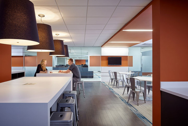 上海裝修公司-康藍(lán)裝飾今天要與大家分享的是,巧妙地利用動感光波營造辦公環(huán)境的辦公室裝修設(shè)計(jì)。設(shè)計(jì)師為其打造了一個充滿能量和動感活力的辦公室,以繼續(xù)保持不斷增長的無限潛力。設(shè)計(jì)師以此為設(shè)計(jì)核心,擴(kuò)建了一個新空間以補(bǔ)充和強(qiáng)化近期剛完成的改造工程。