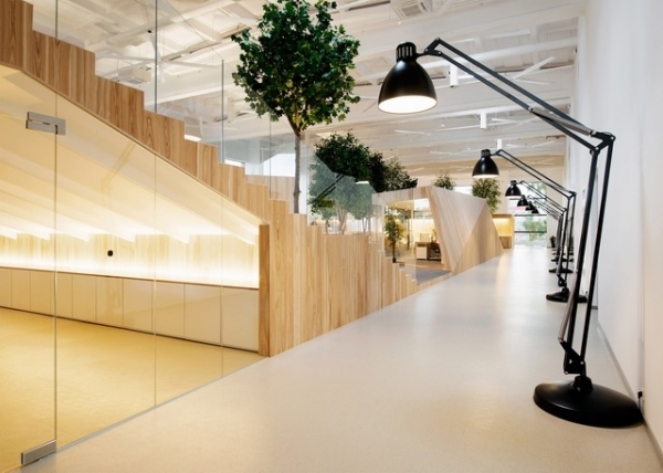 這是一個(gè)由廢棄工廠改建而成的兒童服裝公司辦公室裝修案例。設(shè)計(jì)師選擇原木作為*主要的設(shè)計(jì)元素制造出一些木屋,把它劃分為會(huì)議室、工作區(qū)、休息區(qū)等。辦公室里的公共區(qū)域還種植了五米高的樹木,在辦公室仿佛就置身森林,透過天窗和樹葉灑落的陽光,讓人感受到一個(gè)綠意盎然、溫情脈脈的夏日。