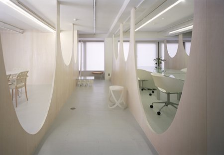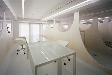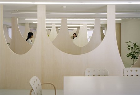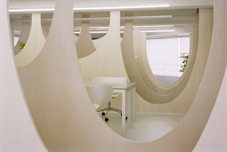 雖然這樣的全隔斷型辦公室裝修不常見,但它有一個天生的好處:在保證一定私密性的同時,空間的連貫性也得到一定程度的保留。只是我在想,在這里工作的人們是不是每天上班前都要默念,第幾排、第幾座,不然坐錯辦公桌那得多有意思啊。