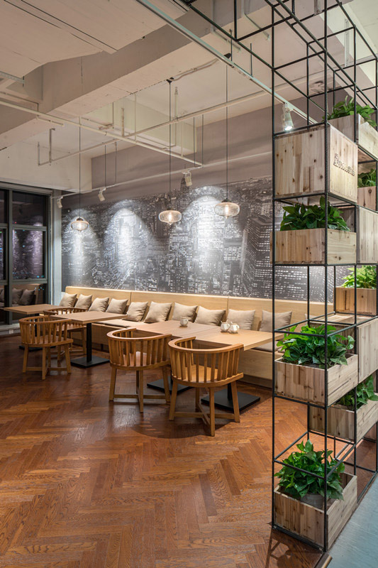 以建筑*基本的材料來重構整個空間的精神:鋼筋、混泥土、原木、原頂、鋼板等喚起工業(yè)城市美學,簡單、大膽、實用,突出設計的屬性。