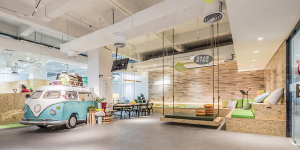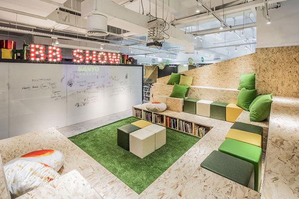 交流區(qū)域的設(shè)計(jì),設(shè)計(jì)師將交流區(qū)域設(shè)計(jì)在辦公區(qū)域的中央?yún)^(qū)域,一則此處完全是個(gè)多元化的空間,既可以滿足全公司集中在一起開(kāi)大會(huì)議,同時(shí)視線極好,閑時(shí)此空間成為大家就近的休憩之所。