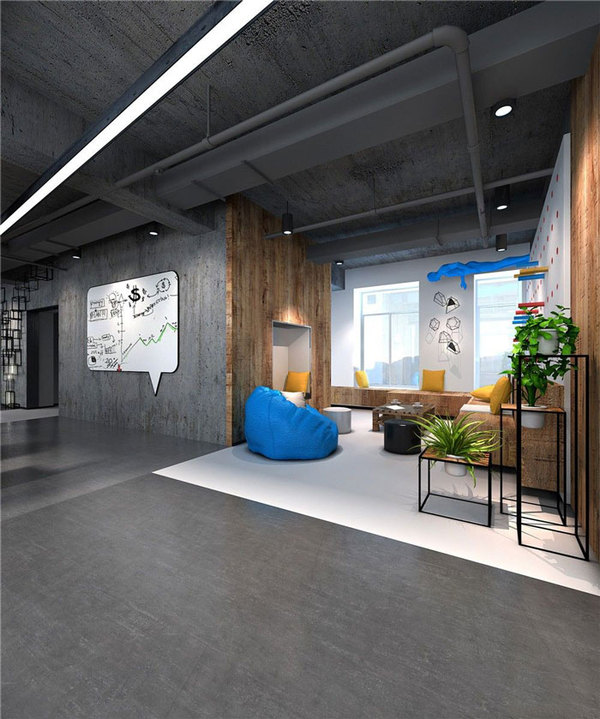 休息區(qū)域的設(shè)計:設(shè)計師在的時候,將其安置在一個寧靜的角落,一則利用其空間自帶的屬性,二則為員工打造安逸、舒適、可以暫時忘卻煩惱的休息空間。