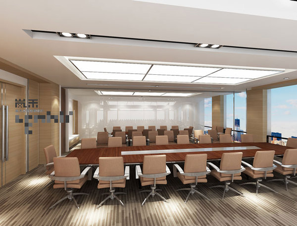 會議室的設計,設計師一邊利用窗簾來調(diào)節(jié)視覺效果,同時在另外兩側(cè)安排條形桌,來擴充不同的人員參會,設計上也是由淺及深,整個空間顯得比較沉穩(wěn),嚴肅而靜謐。