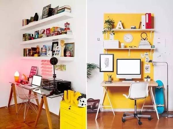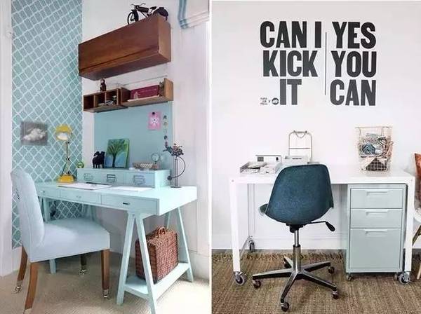 如果家里沒有專門的房間做office的話,在臥室或是客廳的一角也不錯哦~這樣不但能合理利用空間,還能讓你松弛得當,勞逸結合。