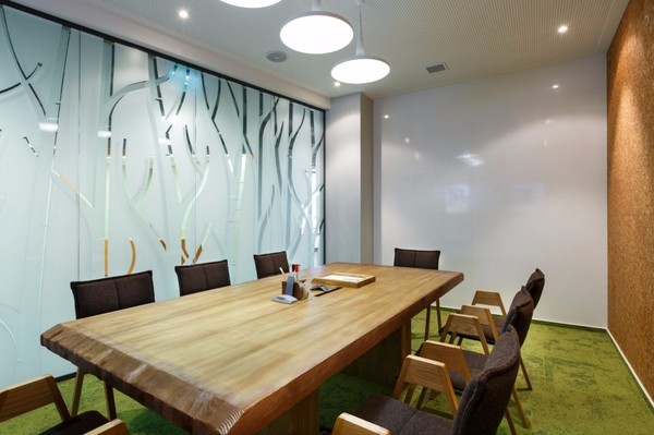 公司辦公室設(shè)計靈感主要來自于現(xiàn)代大城市的基礎(chǔ)設(shè)施構(gòu)造,工作區(qū)好比城市的商業(yè)區(qū);走廊就像城市的大街和小巷;員工餐廳展開來看就是一個可供休閑娛樂的公園。這個符合人體工程學(xué)的辦公空間,還被有效的分區(qū),這里有**的溝通區(qū),還有純天然的裝修材料,這些,為員工們高速有效的工作提供了**的辦公條件。