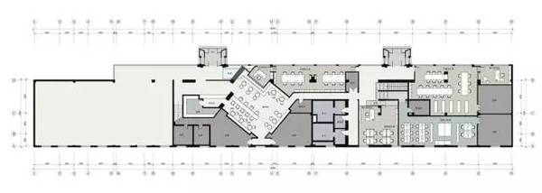 “ 整個創(chuàng)意空間環(huán)境設計中,處理空間分布是*重要的一環(huán)。寸設計在整個空間的布局過程中,用一個變向45度的咖啡廳作為整個,功能分區(qū)的中心集合區(qū),而這個集合區(qū)的作用既起到了咖啡廳和大堂的功能,也在流線上解決了分流問題。 ?”