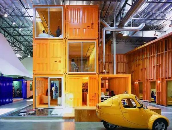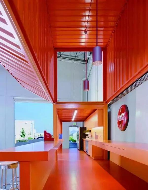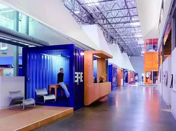 由于整個倉庫沒有集中空調(diào)設(shè)施,在如此大的空間為了有效地節(jié)約能源的消耗,設(shè)計師將員工的辦公位置鎖定在一個個搭帳篷下,相對集中起來,他們稱這里為“呼吸島”。為了進(jìn)一步節(jié)省開支,辦公室內(nèi)的一些相對私密的空間索性直接用集裝箱改造,同時,這些色彩艷麗的集裝箱反倒為這里添加了幾許活潑。