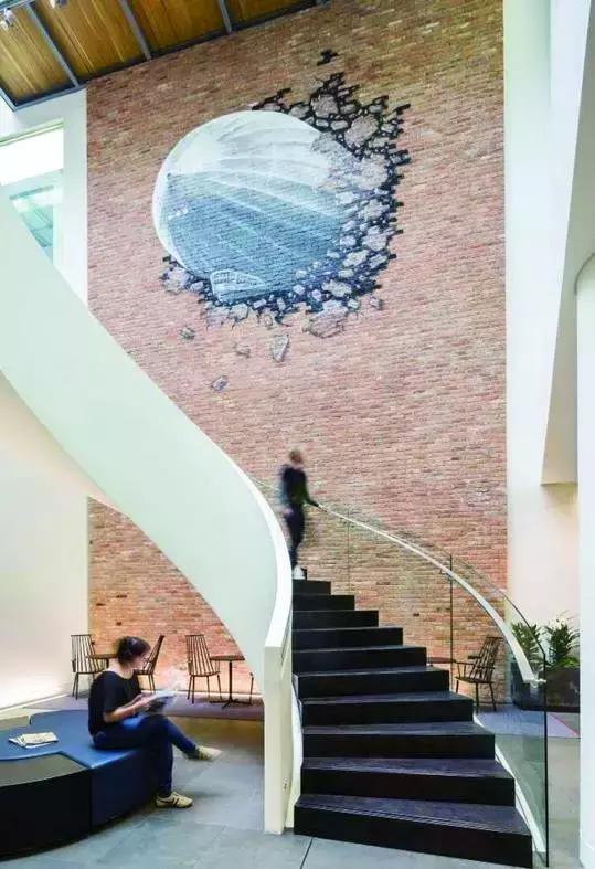 ▲墻上那個巨大的球體是什么?感覺它隨時要沖出來了!辦公室裝修:http://www.jshbj.cn