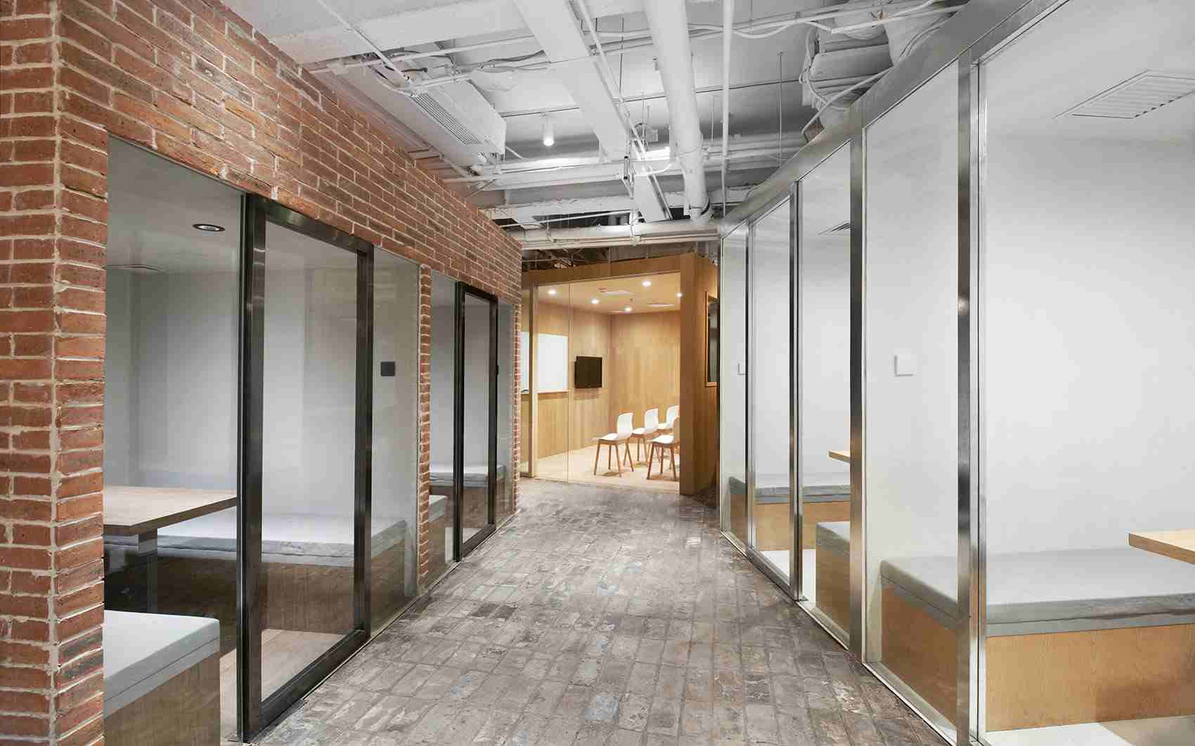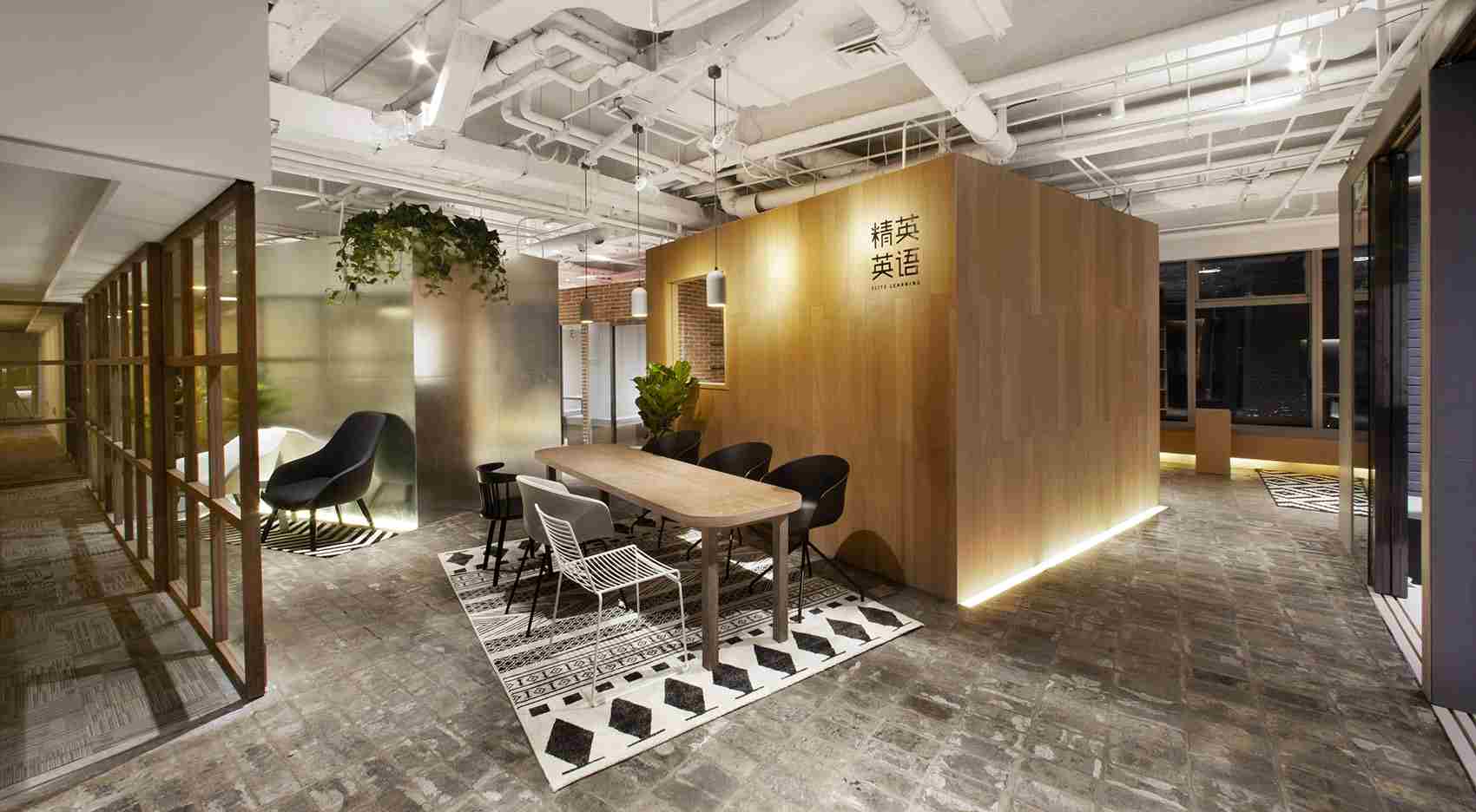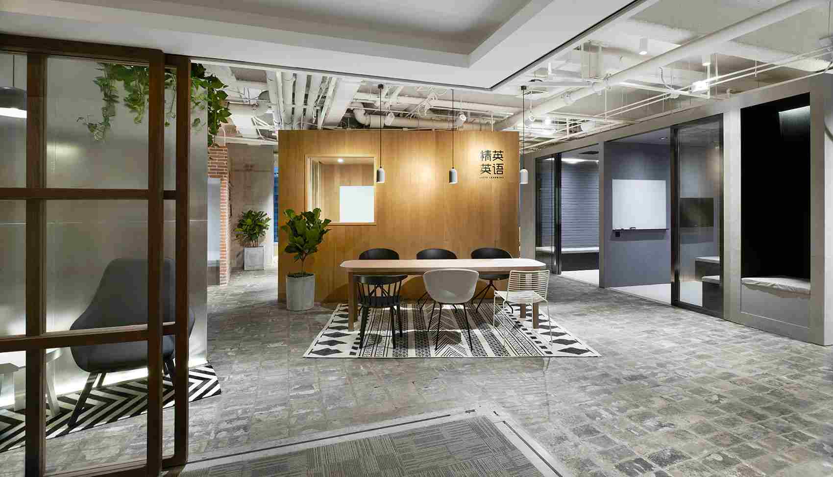 項(xiàng)目位于一座辦公樓內(nèi),業(yè)主租賃三個(gè)房間作為學(xué)校的辦公和培訓(xùn)區(qū)域。為了整合全部的空間的使用,設(shè)計(jì)師將其打通成為一整個(gè)房間。