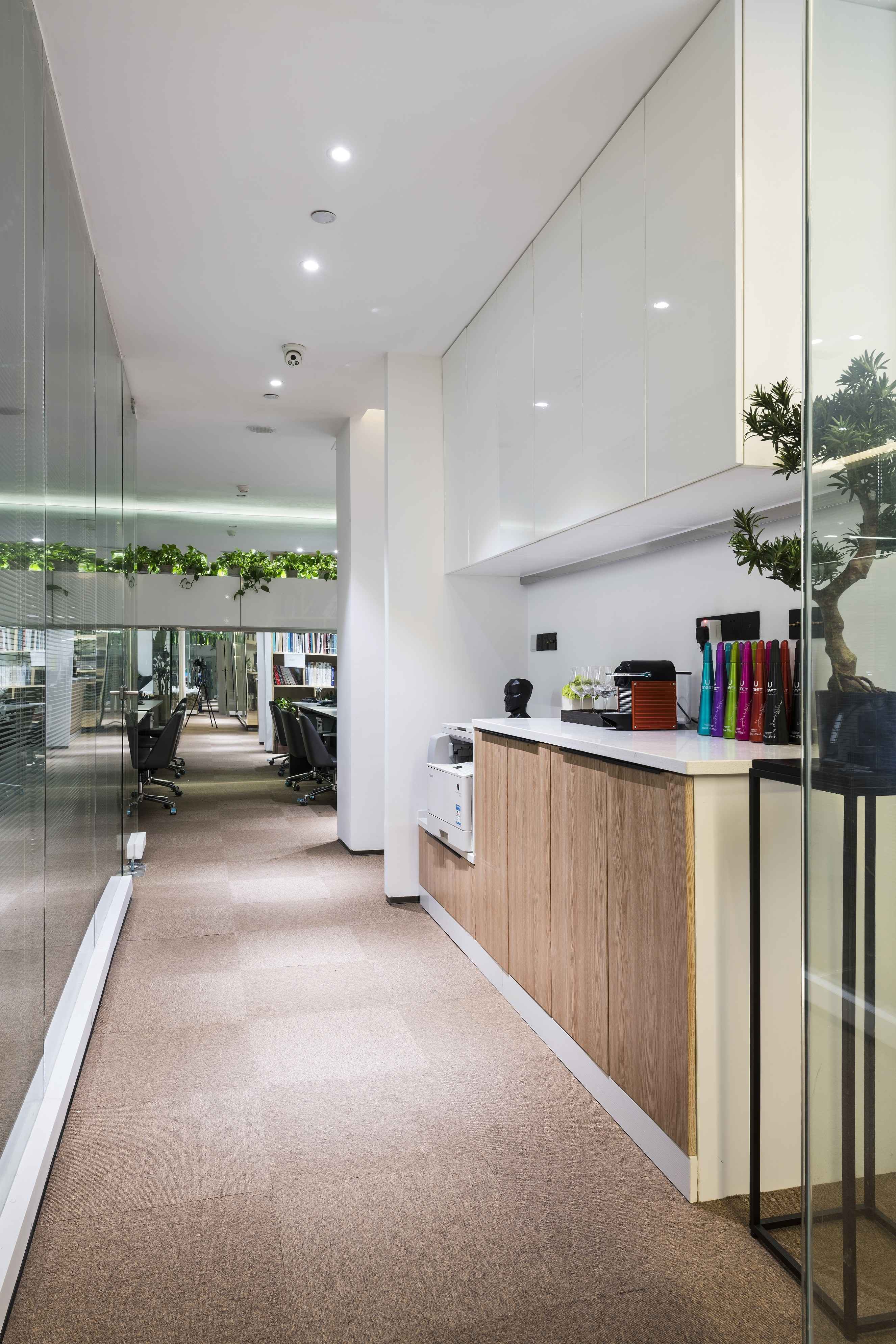 室內(nèi)過度空間(如閱讀區(qū))提供了人與人之外的交流,室內(nèi)空間采用單純的材質(zhì)和線條,配以鏡面和綠植,營造清晰、舒適的辦公環(huán)境。