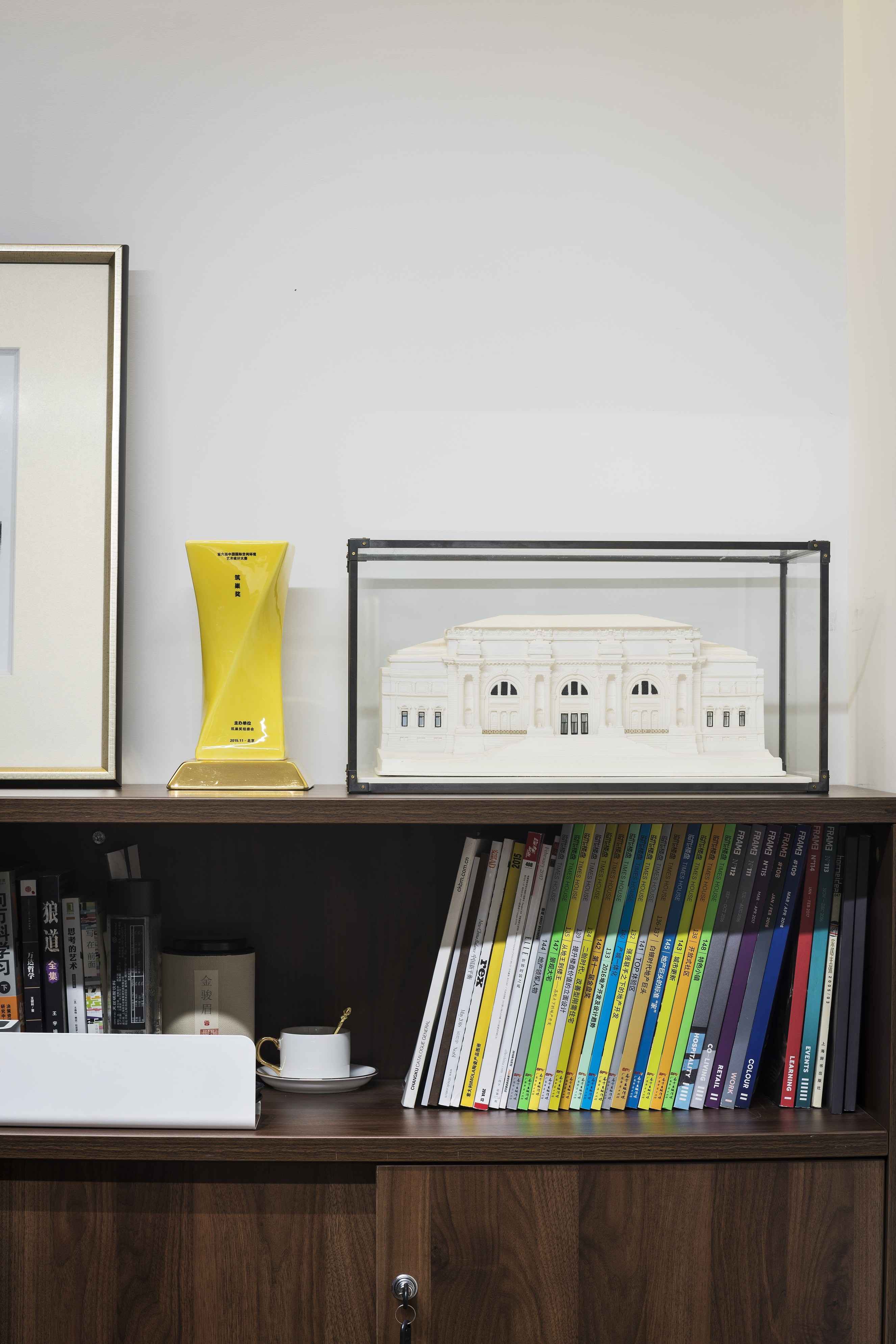 室內(nèi)的墻身以簡約紋理的乳膠漆配搭木書櫥,極簡中不失秩序,結(jié)合暖光燈帶、大理石前臺和地毯,使空間感覺更加舒適自在。