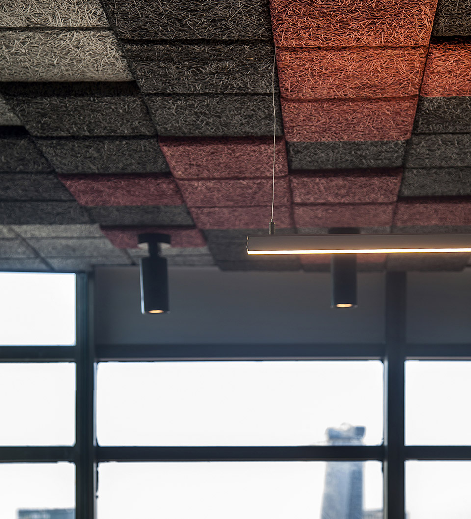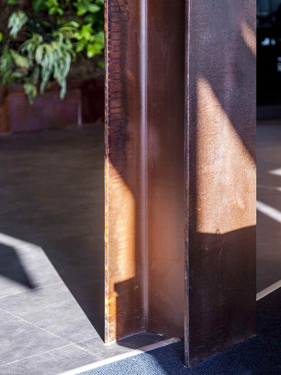 這種理念扎根于每個(gè)細(xì)節(jié),貫穿了空間設(shè)計(jì)的始終。環(huán)形的空間格局帶來了不少挑戰(zhàn),而設(shè)計(jì)團(tuán)隊(duì)僅有2個(gè)月的時(shí)間來解決所有問題。此外,業(yè)主還對(duì)空間的開放與通透性做出了明確的要求。而為了滿足業(yè)主的需求,設(shè)計(jì)團(tuán)隊(duì)與施工單位Shin Angel合作,給出了針對(duì)性的技術(shù)解決方案,無論是開放式的聲音屏障,抑或14根銹蝕鋼梁的添加,都是針對(duì)設(shè)計(jì)需求量身定制的。