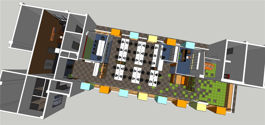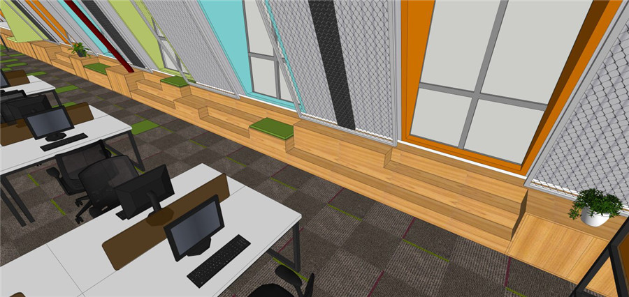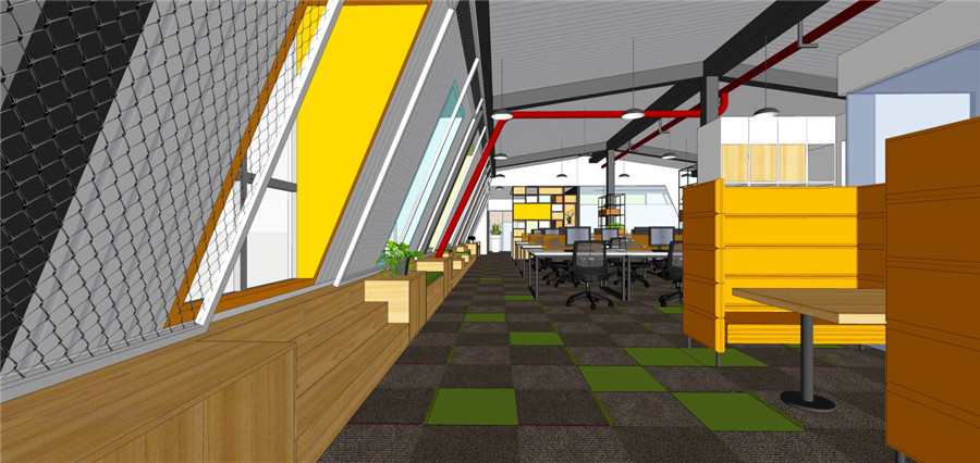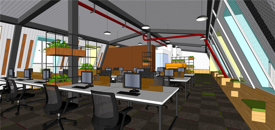 該項(xiàng)目*吸引我們的是斜坡式建筑頂,設(shè)計(jì)師決定保留原建筑裸露天花是本案設(shè)計(jì)的開始。設(shè)計(jì)任務(wù)是建造一個(gè)涵蓋多部門、多功能,年輕時(shí)尚的辦公環(huán)境。